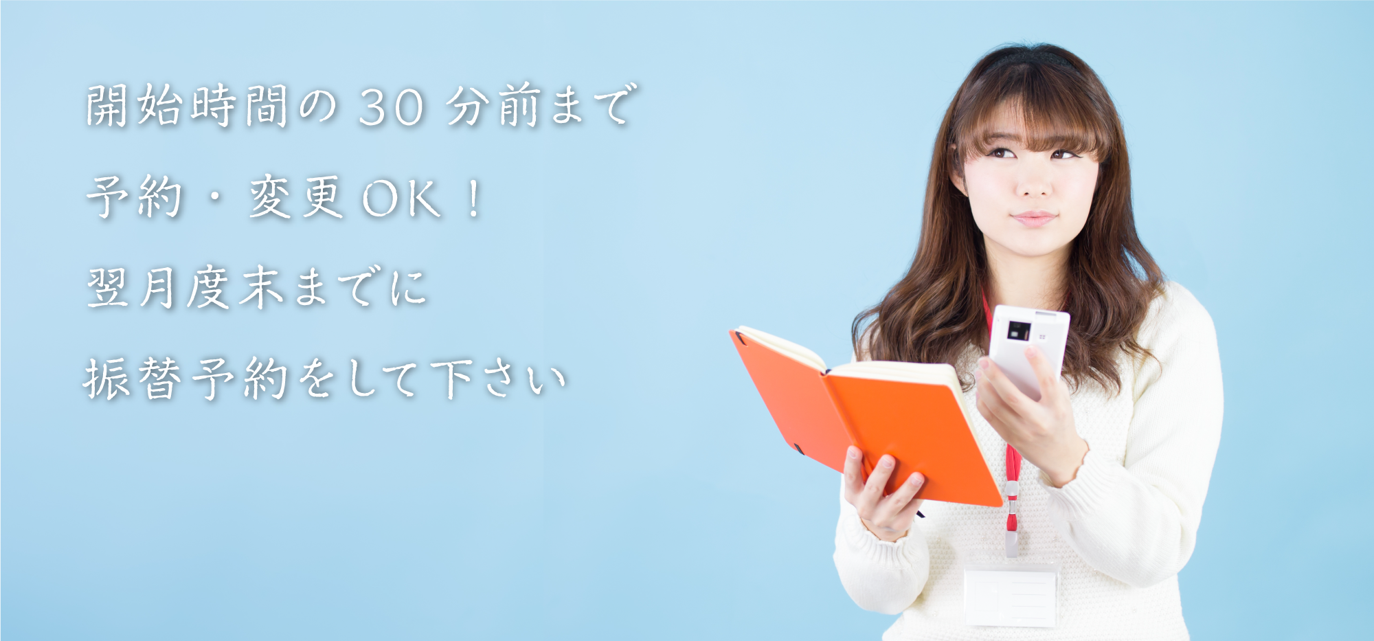 *受講予約はレッスン開始の30分前まで可能です。(取消は60分前までとなります)